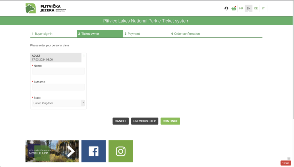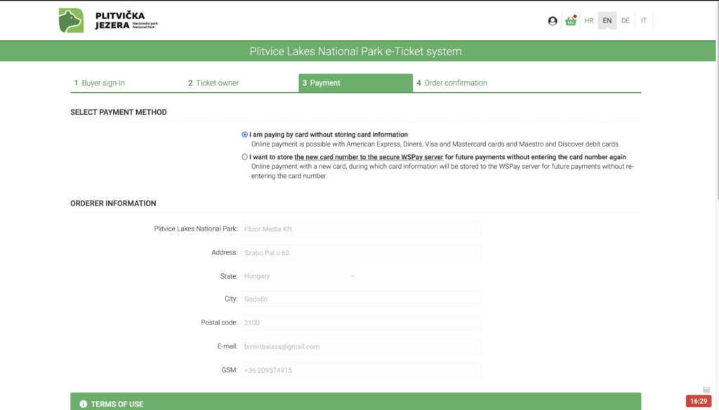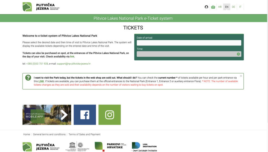 You can buy Plitvice Lakes National Park tickets in two ways: