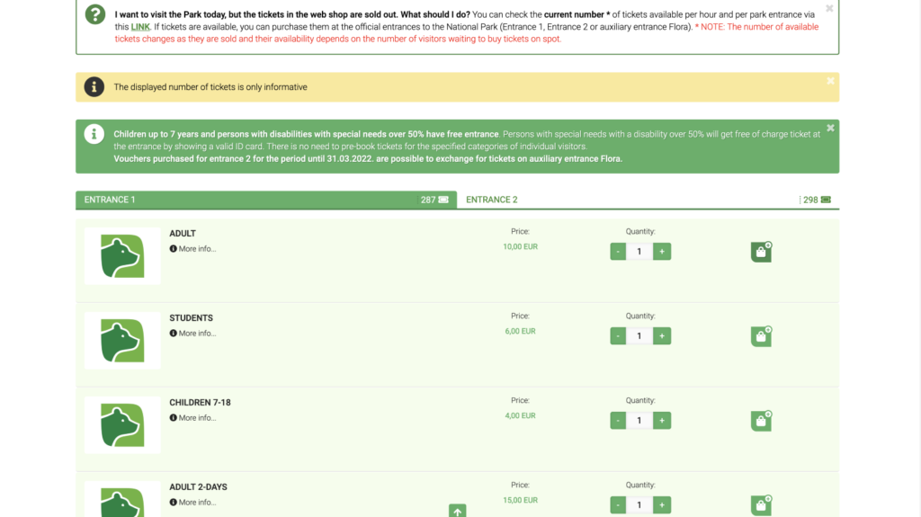 - In-person: Tickets are also available at the park entrances (Entrance 1, Entrance 2). However, availability isn’t guaranteed as there is a limit every day, and also you can count on long waiting lines when you get there.